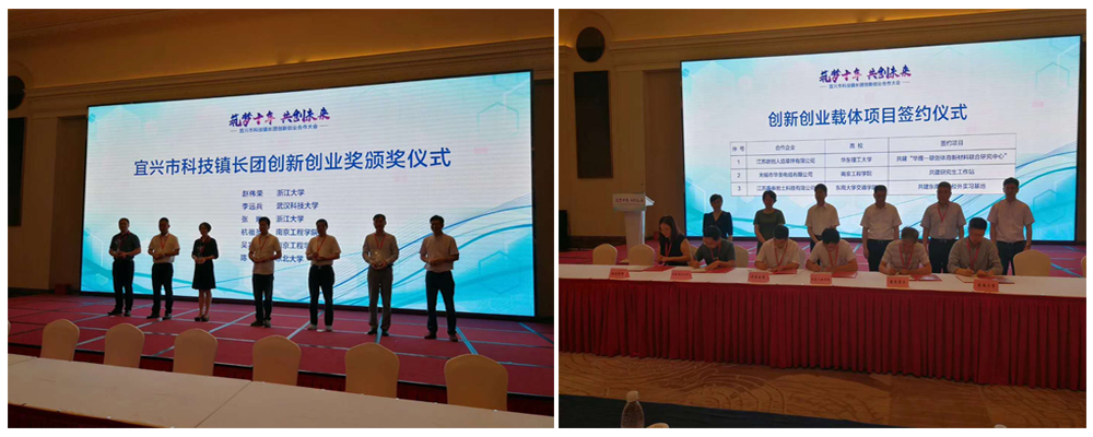 在大会颁奖和签约环节,我校往届挂职的杭祖圣博士和吴功德教授获得了创新创业奖;我校和无锡市华美电缆有限公司签约了共建研究生工作站协议;我校与江苏国信协联有限公司和共昌轧辊股份有限公司分别进行了项目签约。