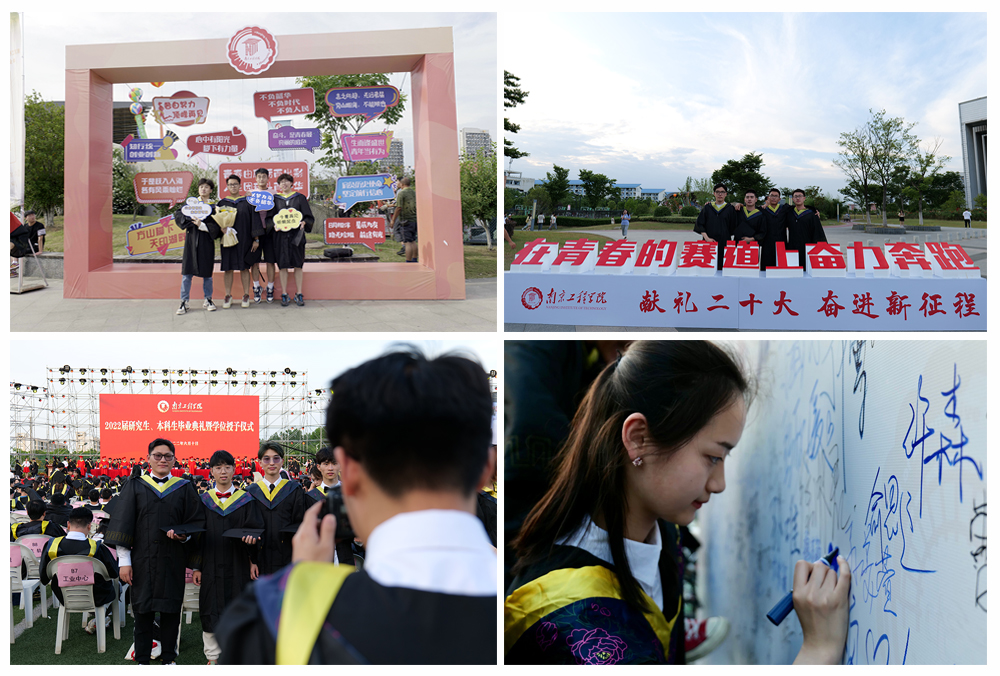 机械工程领域研1901班侯儒伟、经济与管理学院人力181班夏伟代表全体毕业生深情回顾了在南工程的求学经历,向精心培育自己的母校和老师、辛勤操劳的父母以及朝夕相处的同窗表达了衷心的感谢,并立志在青春的赛道上跑出南工程人的青春加速度,努力成为强国先锋,复兴栋梁。