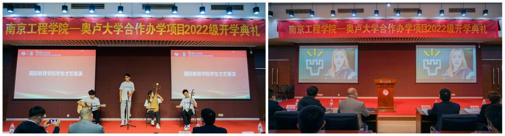 由于疫情原因,奥卢大学的领导和教师无法来到现场,他们通过云端连线表达对新生的祝福。奥卢大学中芬项目负责人Jouni Markkula教授在致辞中表示,中芬合作办学项目体现着开创精神、国际视野以及世界一流的教育水平,致力于为每个学生提供国际化体验。希望同学们能够锻炼出“全球视野、学以致用”的行为范式,成长为有能力引领未来的杰出青年。奥卢大学教师代表Virpi Viio女士勉励新同学们要努力学习,相信自己,勇于探索。通过接收有趣并具有挑战性的学习内容,勤学苦问,培养出真正的学习热情。希望学生获得实用技能,在学业和职业生涯发展中都能收益颇丰。