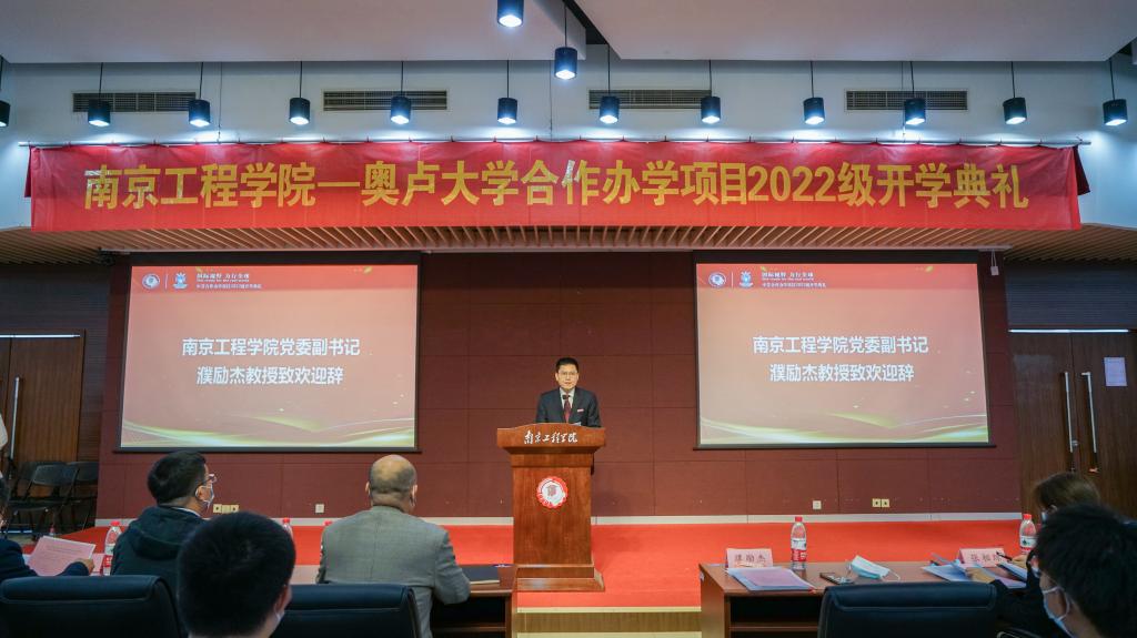 开学典礼上,濮励杰副书记代表凯发全体师生对出席活动的嘉宾表示衷心感谢,对中芬合作办学2022级新同学表示热烈欢迎。他指出,凯发与奥卢大学之间自开展校际交流以来,已形成特色鲜明的在地国际化人才培养体系。今年7月,该项目84名首届毕业生顺利完成学业,获得中、芬双方本科学位,从美丽的天印湖畔走向全球各地,有数十人进入悉尼大学、赫尔辛基大学、奥卢大学、香港大学、西安交通大学等国内外知名高校深造。他对2022级新生提出三点期望:一是永葆爱国之心,要厚植家国情怀、人民情怀,肩负起报效祖国、服务社会的使命;二是永葆兼容之心,要培养全球思维,海纳百川,铸就兼容并蓄、胸怀天下的气度;三是永葆求问之心,要勇于探索、不惧失败,增强开拓创新的勇气和知行统一的能力。他勉励同学们始终将个人的成长成才与国家的强盛、民族的复兴紧密相联,不负韶华、不负时代,努力成为具有家国情怀、全球视野、知行统一、勇于创新的栋梁之才。