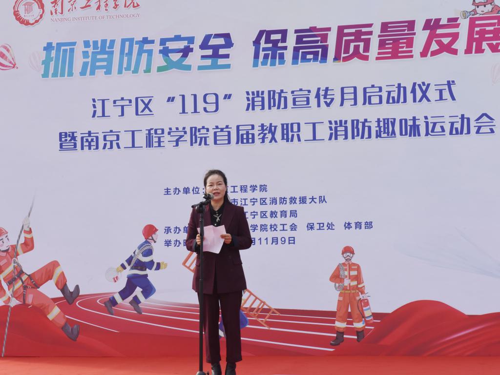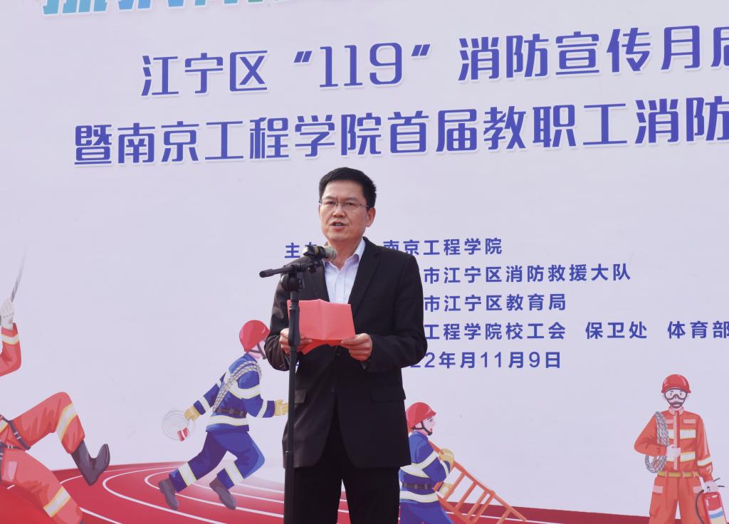 活动以“抓消防安全,保高质量发展”为主题,由我校与江宁区消防救援大队、江宁区教育局联合举办。江宁区消委会副主任、消防救援大队大队长姜柏春,江宁区消防救援大队党委书记、政治教导员郑泽叶,江宁区教育局副局长杨圆;我校党委副书记濮励杰,党委常委、副院长张仰飞、郑锋共同出席活动。江宁区中小学、幼儿园主要负责人及我校教职工代表等参加了本次活动。