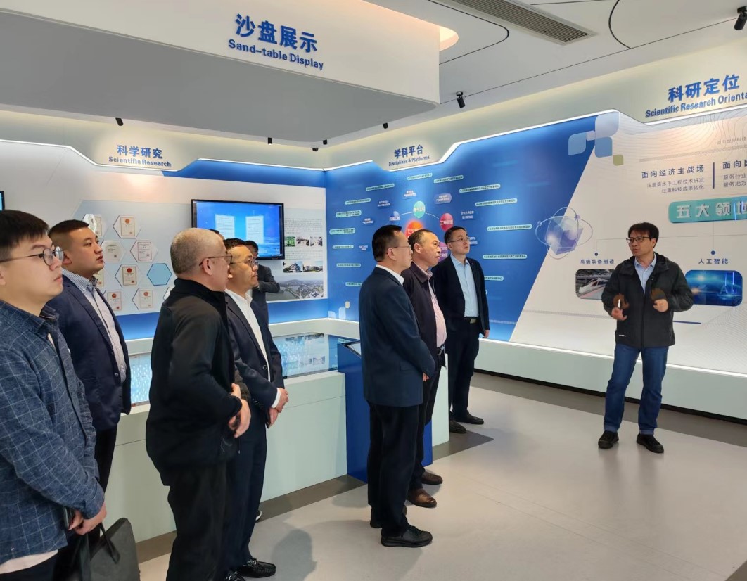 政企代表团一行先后实地参观了科技创新展与人工智能产业技术研究院,就智能检测、智能建造、智能电力等人工智能相关方向项目合作进行了深入交流和座谈。