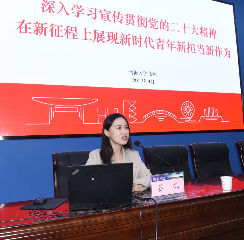 濮励杰副书记在主持时指出:今年是全面贯彻落实党的二十大精神开局之年,学习好、宣传好、贯彻好党的二十大精神,是当前和今后一个时期的首要政治任务。辅导员、思政课教师是广大青年学生思想上的引路人,为学生理想信念“点灯引路”,肩负为党育人、为国育才的光荣使命;团学骨干、学生党员是广大青年学生中的佼佼者,更要在深入学习贯彻党的二十大精神上发挥先锋模范作用,做党的二十大精神的坚定践行者和传播者。我们要紧跟学习习近平总书记重要讲话、重要指示精神,围绕总书记关于“五个牢牢把握”和“全面学习、全面把握、全面落实”的重要指示,结合即将在全党开展的主题教育,把深入学习贯彻党的二十大精神同学习贯彻习近平新时代中国特色社会主义思想主题教育结合起来,同深入学习贯彻习近平总书记对江苏工作的一系列重要指示结合起来,同深入学习贯彻习近平总书记关于教育的重要论述结合起来,进一步丰富载体、创新手段,突出全面覆盖,注重工作实效,推动学习宣传贯彻党的二十大精神往深里走、往实里走。他希望大家进一步坚定理想信念,牢记初心使命,将党的二十大精神融入课堂,推动党的二十大精神在广大青年中落地生根,激发更多青年学生深怀爱党爱国之心、砥砺报国之志,让青春在奋斗磨砺中绽放绚丽光彩,为实现第二个百年奋斗目标、实现中华民族伟大复兴的中国梦贡献力量。
