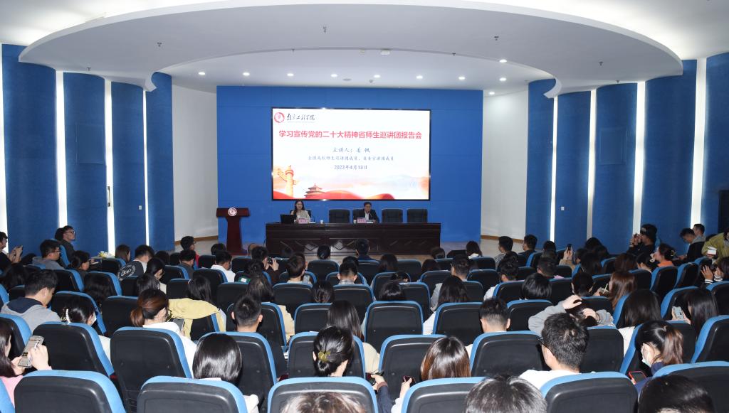4月13日下午,我校在图书馆报告厅举行学习宣传党的二十大精神省师生巡讲团报告会,全国高校师生巡讲团成员、省委宣讲团成员、全国辅导员素质能力大赛“十佳标兵”姜帆作宣讲报告,并与师生深入交流。报告会由校党委副书记濮励杰主持。全体辅导员、思政课教师、团学骨干、学生党员代表等250余人参加了报告会。