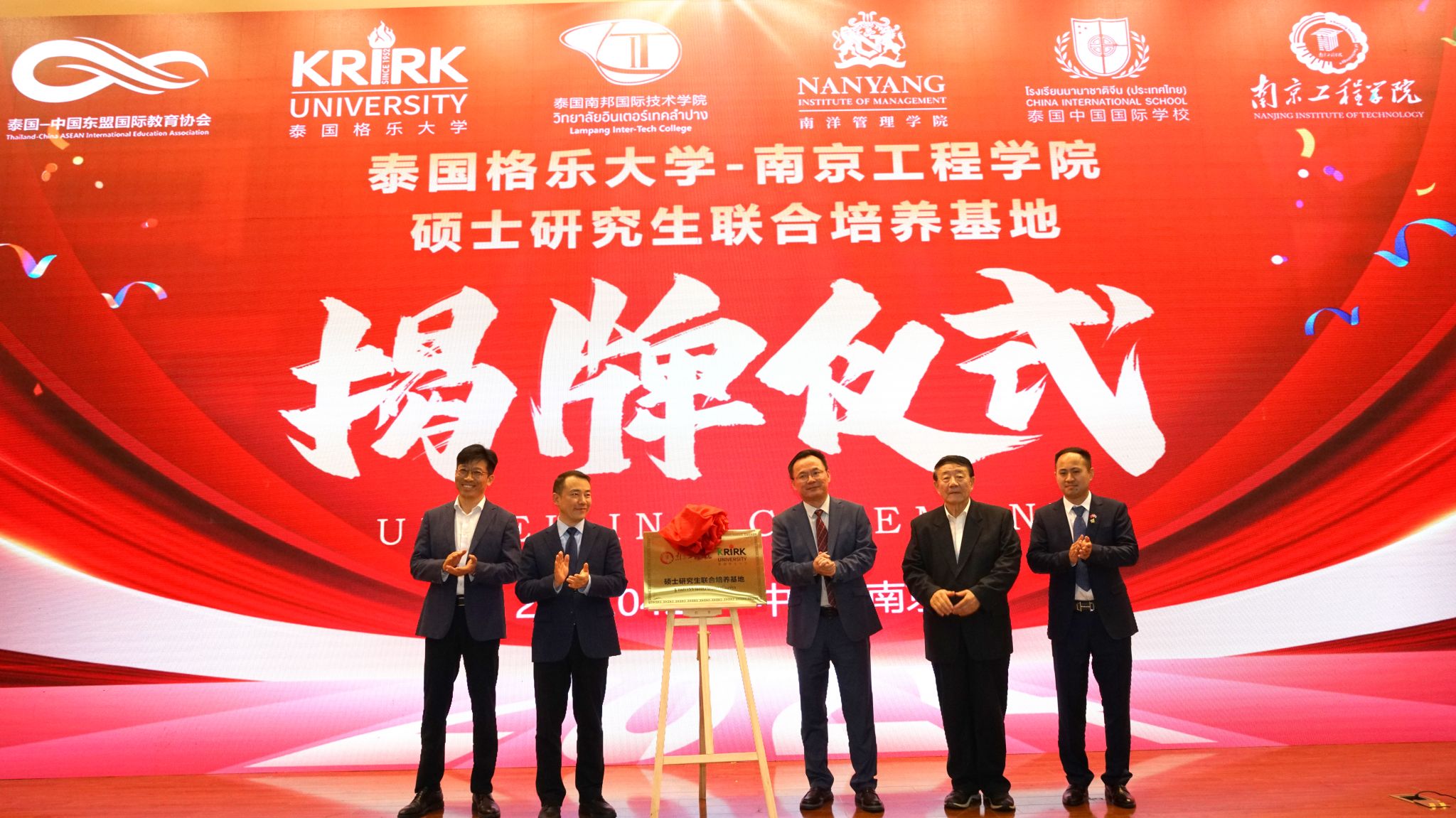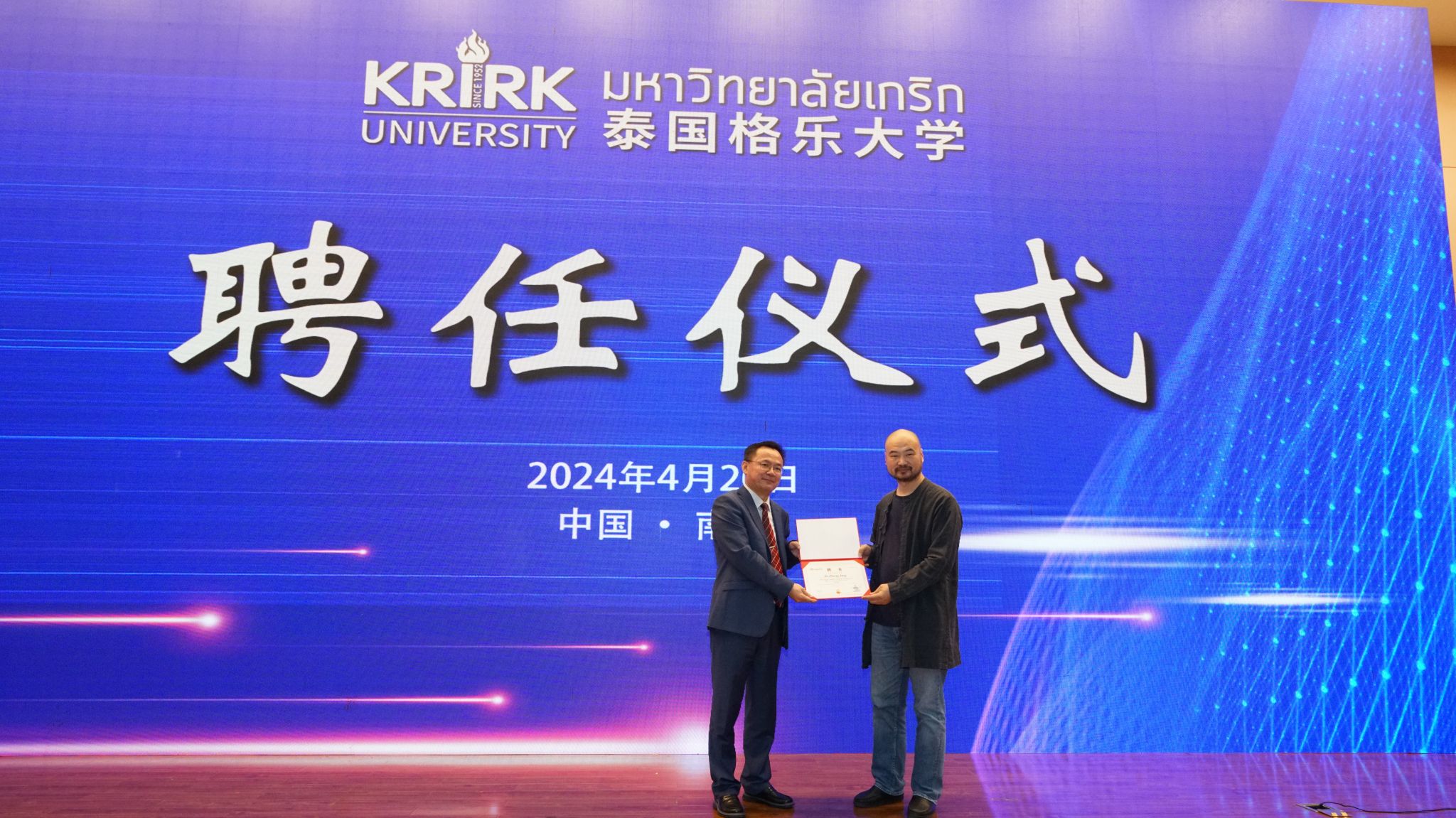 会上还举行了凯发k8官网-泰国格乐大学硕士研究生联合培养基地揭牌仪式和泰国格乐大学兼职教授、博士生导师聘用仪式,我校艺术与设计学院院长郑静受聘为兼职教授、博士生导师。