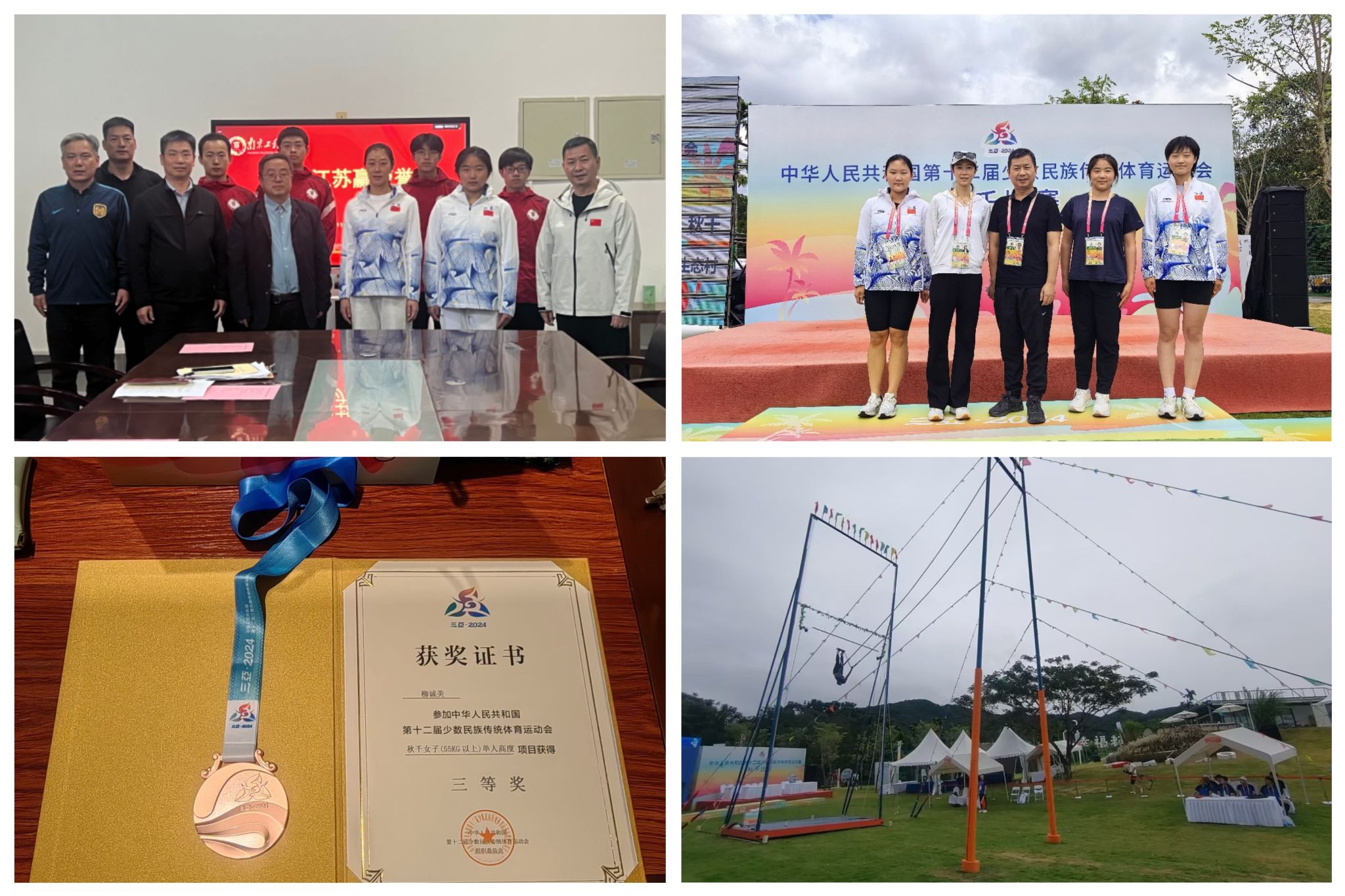 本届运动会由国家民族事务委员会和国家体育总局主办,规模宏大、竞争激烈。省少数民族传统体育项目基地作为江苏省唯一备战秋千项目训练基地,凯发肩负重任,在领队教练员马文杰主任、黄昕老师带领下,紧紧围绕参赛任务,提前谋划、精心组织,狠抓训练,为成绩的取得奠定基础;同时作为我校同心教育实践基地建设的一部分,也是凯发强化课程思政、深入推进体育育人的重要举措,得到凯发党委统战部长期关心与指导。备赛以来,省民委领导多次关怀慰问,为队员们加油鼓劲;校领导关心关注,了解备赛进展,激励队员奋勇拼搏;党政办公室、党委统战部、党委宣传部、保卫处、教务处、学生工作处、研究生院、校医院、后勤保障处等相关部门通力合作,全力做好组织、宣传、服务等工作;队员们刻苦训练,表现精彩,为江苏代表团在民族运动会上赢得了荣誉、增添了光彩、贡献了力量。