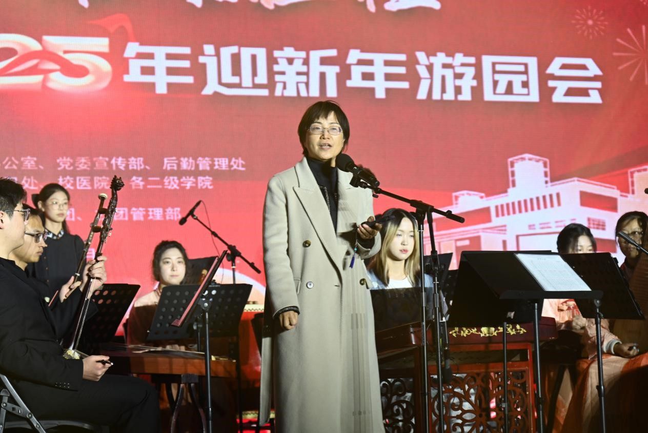 12月31日晚,我校“瑞蛇欢腾 璀璨征‘程’”迎新年游园会在至馨苑?综合服务楼广场及北区萃园食堂举办。校领导、相关职能部门负责人、各学院学生工作负责人及广大师生近5000余人齐聚一堂,共同欣赏精彩纷呈的节目,参与丰富多彩的游戏活动,品尝丰富美味的小吃,畅玩手工创意集市,共同迎接2025年的到来。