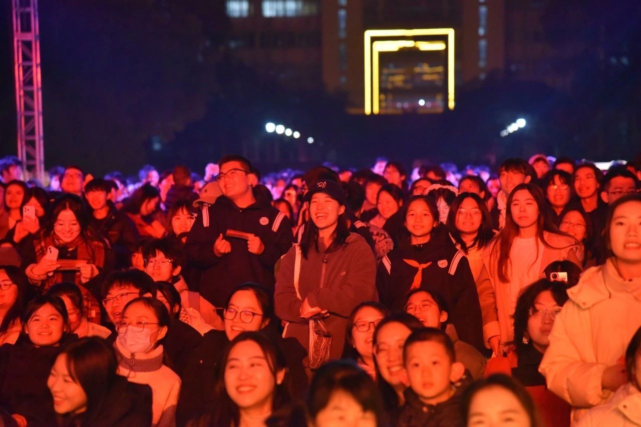 外场表演活动在学生社团极光电音社带来的动感旋律中正式拉开序幕。天印大鼓《中国龙》用激昂的鼓点,点燃了现场的热情;大艺团民乐团《金蛇狂舞》《花好月圆》以悠扬的旋律,引领观众们穿梭于传统与现代的音乐殿堂;魔术社《寻箸》以筷子为媒介,展现了魔术的魅力,外国留学生带来的舞蹈《Hridoyo mondrilo》,则展现了其独特的艺术魅力……街舞、戏剧、相声、配音等节目也轮番上演,现场欢声笑语不断,为冬日的夜晚增添了不少温暖和喜悦。