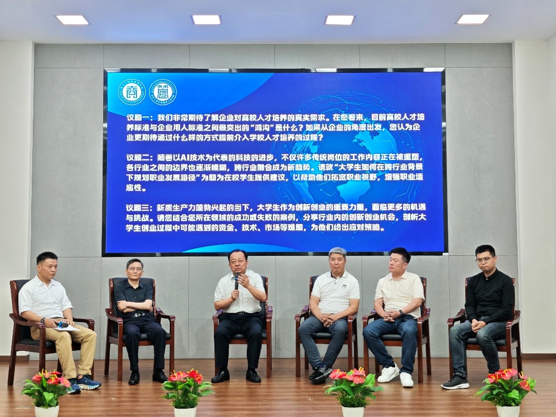 在圆桌论坛环节,企业家们围绕高校人才培养与企业用人标准的“鸿沟”及解决路径、跨行业职业规划建议、新质生产力背景下创新创业的机遇与挑战等三大核心议题展开深入探讨。