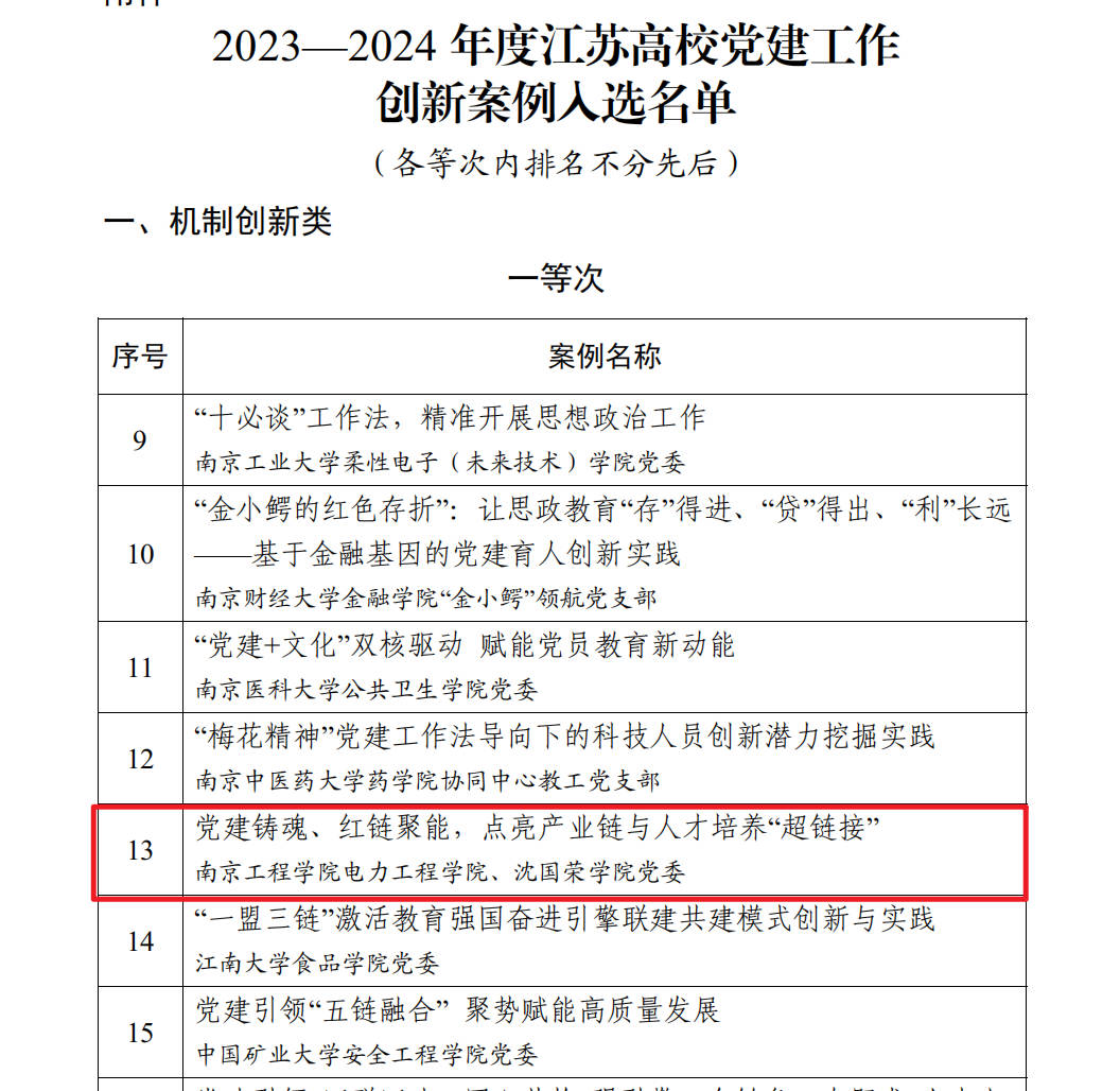 9月1日,中共江苏省委教育工委公布2023-2024年度江苏高校党建工作创新案例名单。我校推荐申报的案例喜获一等次1项、二等次1项、三等次2项。