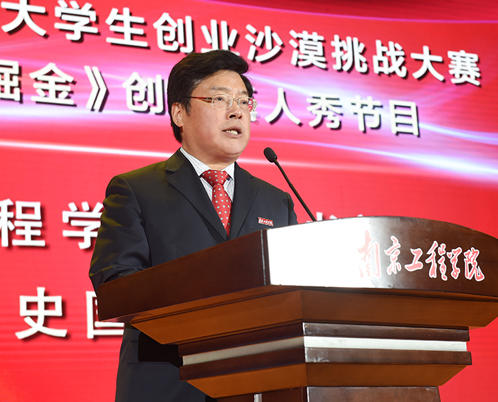 此次活动由中国创业创新发展委员会、中国下一代教育基金会、南京江宁高新园管委会和我校主办。江苏省委教育工委副书记潘漫、中国创业创新发展委员会主任李朝平、商务部中国国际贸易协会主任陈逸、中国创业创新发展委员会执行主任助理苏红艳、南京江宁高新园管委会副主任贝淑芳、中国下一代教育基金会生命阳光爱心基金常务副主任姜一萍、团中央未来网《生命阳光》频道执行总监张军、天津博爱生物医药集团副董事长刘振鹏、后大学时代教育集团创始人兼董事长江永胜,我校党委书记史国君、副院长张仰飞出席活动开幕式。