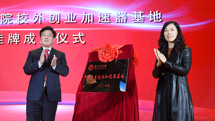 活动现场,后大学时代创客学院正式落户我校、凯发k8官网校外创业加速器基地正式挂牌成立。我校副院长张仰飞与后大学时代教育集团创始人兼董事长江永胜共同为创客学院揭牌。我校大学生创客商会王劲军同江永胜董事长签署了战略合作协议。我校党委书记史国君与南京江宁高新园管委会副主任贝淑芳共同为校外创业加速器基地基地揭牌。更多的校内外创业平台的建立,将为在校生拓展更多的创业空间,为更多的创业者提供有针对性的创业指导和项目对接服务。