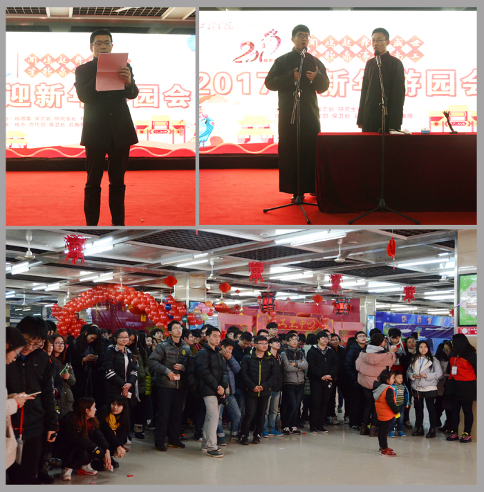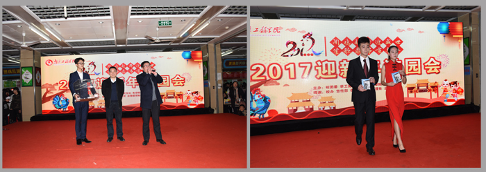 从下午17:00起,暖场艺术表演就点燃了跨年的欢乐氛围。晚上18:00,新年贺岁短片《你好,南工程》拉开了游园会的序幕,张仰飞副院长现场致新年贺词,简要回顾了我校2016年所取得的成绩,并对广大同学表达了2017年的美好祝愿。