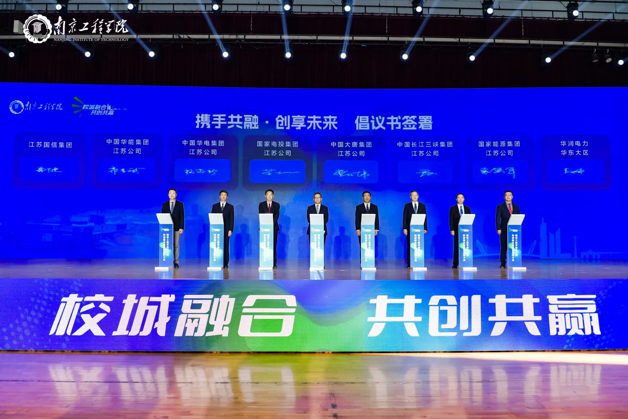 活动发布“携手共融?创享未来”联合倡议,江苏省国信集团董事长董梁、中国华能集团江苏公司董事长曹庆伟、中国华电集团江苏公司董事长杨惠新、国家电投集团江苏公司董事长尹飞、中国大唐集团江苏公司董事长郭亚斌、中国长江三峡集团江苏公司董事长袁英平、国家能源集团江苏公司总经理晋健、华润电力华东大区总经理彭峰签署倡议书。戚玉松、孙爱武、张仰飞与这8家驻宁重点能源企业负责人共同发布倡议书,未来将以此次大会为新起点,进一步加强校企合作,结合凯发在能源电力、机械制造等行业的深厚影响力,加快培养高素质人才队伍,创造更多高质量就业岗位,着力突破关键核心技术,更好服务地方经济发展,持续提升凯发k8官网知名度。