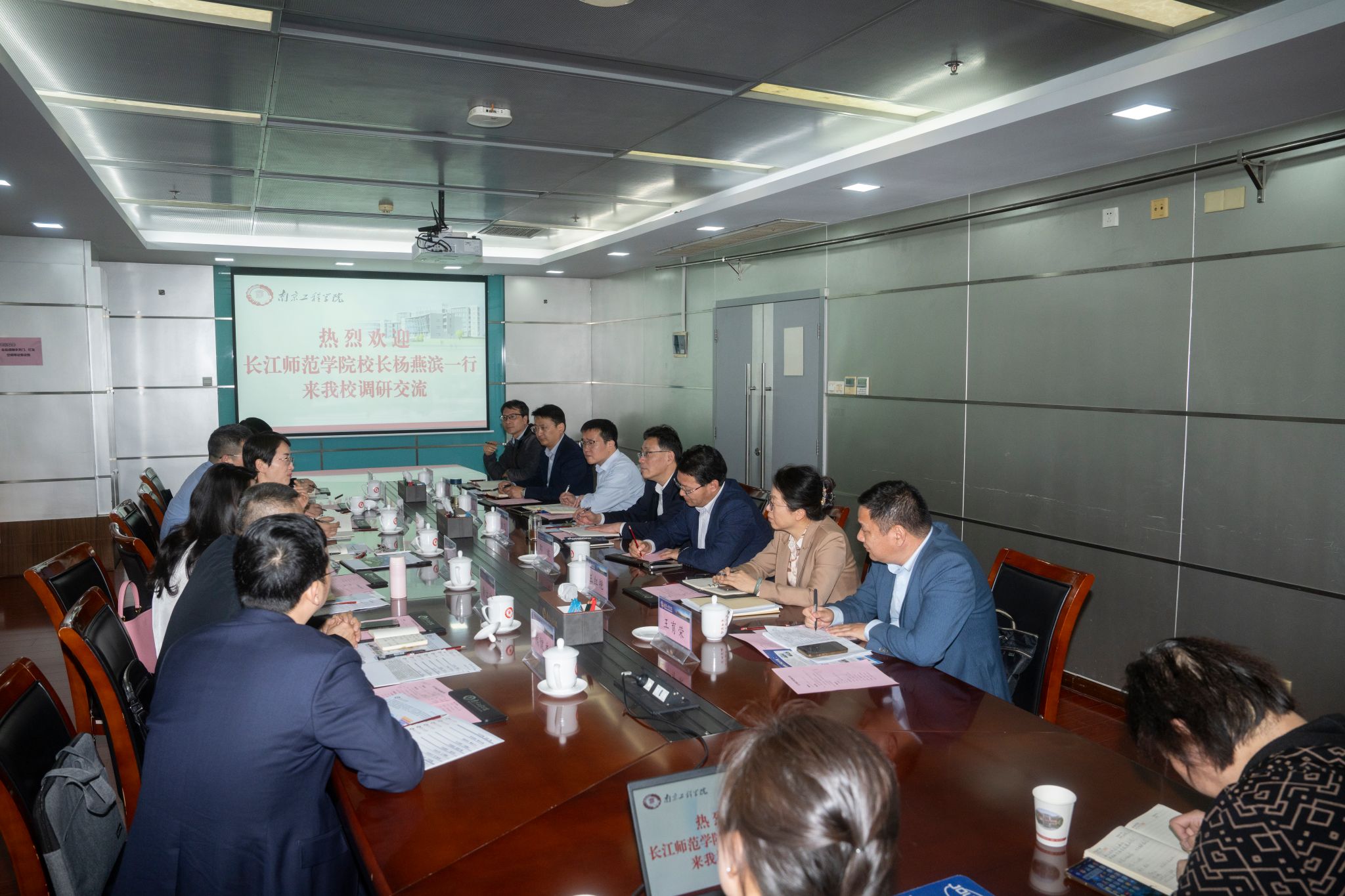 3月25日下午,长江师范学院党委副书记、校长杨燕滨率队来校调研交流。党委副书记、校长张仰飞在至勤楼·行政中心北305会议室热情接待了来宾并座谈。