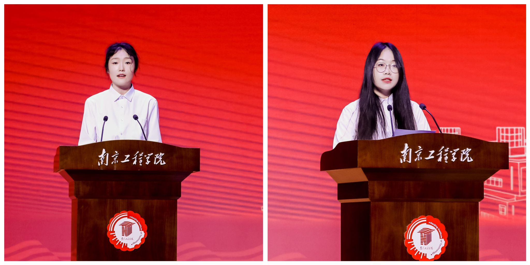 毕业生代表电气工程专业研2205班朱晓、高分子材料211班余子含在发言中感恩南工程这片滋养的沃土,感谢老师们的教诲,感激同学们的陪伴,表示将铭记母校“学以致用”的教诲,传承南工程人“知行统一,创业创新”的精神品格,以青春之我、奋斗之我,在时代浪潮中勇立潮头,用实际行动为母校争光添彩。