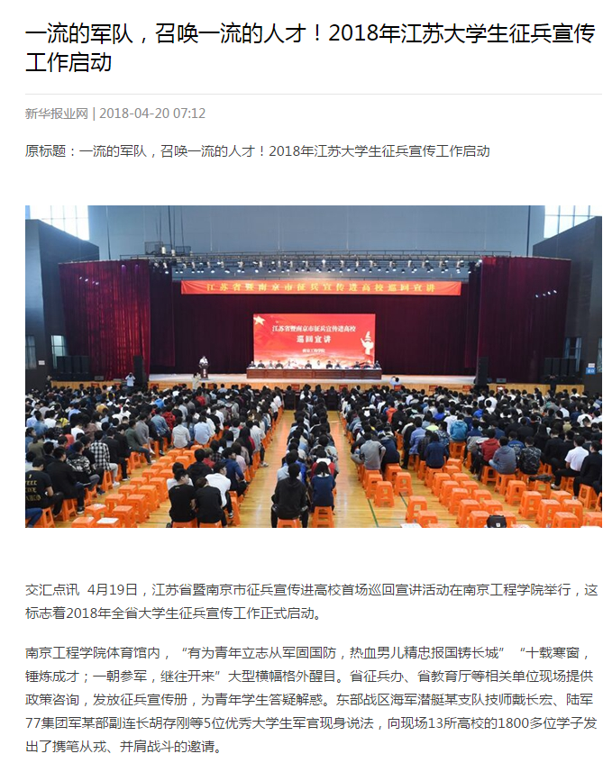 《交汇点》:一流的军队,召唤一流的人才!2018年江苏大学生征兵宣传工作启动