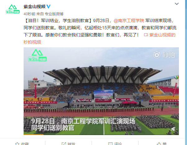 《紫金山视频》:泪目!军训结业,学生泪别教官
