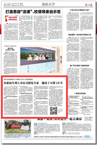 《南京日报》:从职高生到上市公司研发专家 他用了不到10年