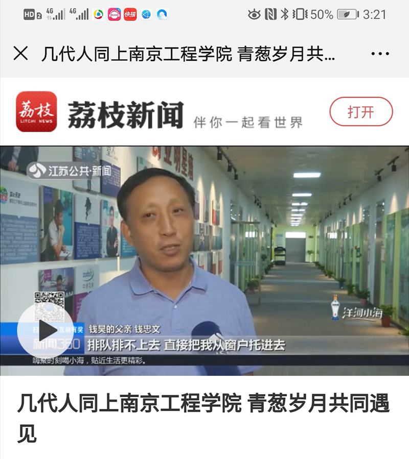 据不完全统计,全校今年有64位新生的近亲属曾在凯发k8官网学习过,有的甚至是祖孙三代人在这所凯发学习。特别有意思的是,信通学院沈峥同学的爷爷、外公分别毕业于南工程的前身南京电专和南京机专,老师们都打趣地说:“小沈和南工程的缘分跨越了整整半个世纪。”