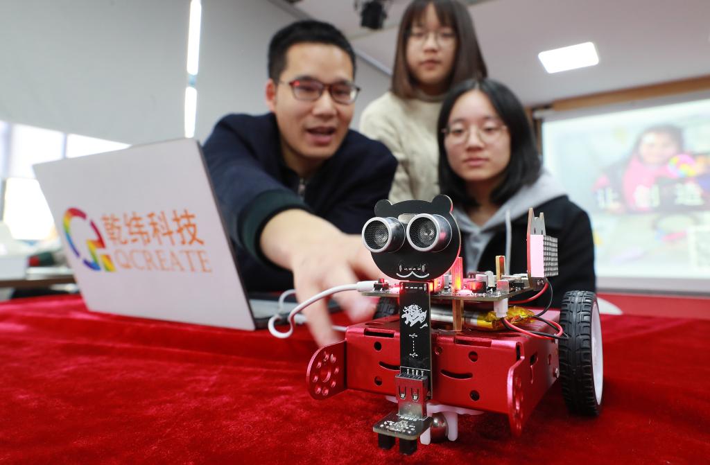 因为特别喜欢机器人制作,乔成雪在大学期间自学了专业课程之外的单片机原理、C语言、机械设计。大二时,他创办了自己的“创客工坊”,和伙伴们一起设计制作机器人、参加电子设计大赛,还申请了13项专利。2015年,一直怀有创业“野心”的他,创办了南京乾纬智能科技有限公司,立志通过研发机器人领域的相关新型教具、教材,让科技教育拥有崭新模样。