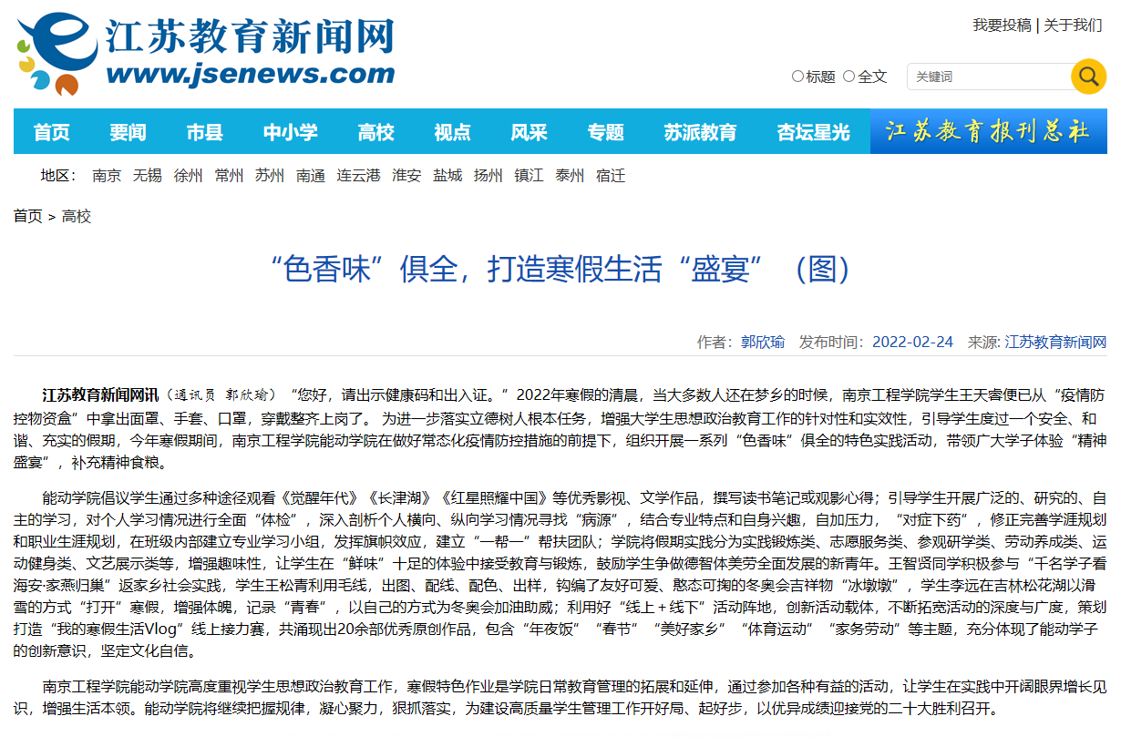 《江苏教育新闻网》:“色香味”俱全,打造寒假生活“盛宴”