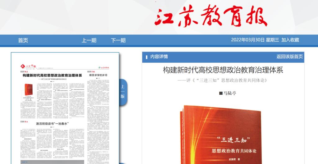 《江苏教育报》:构建新时代高校思想政治教育治理体系
