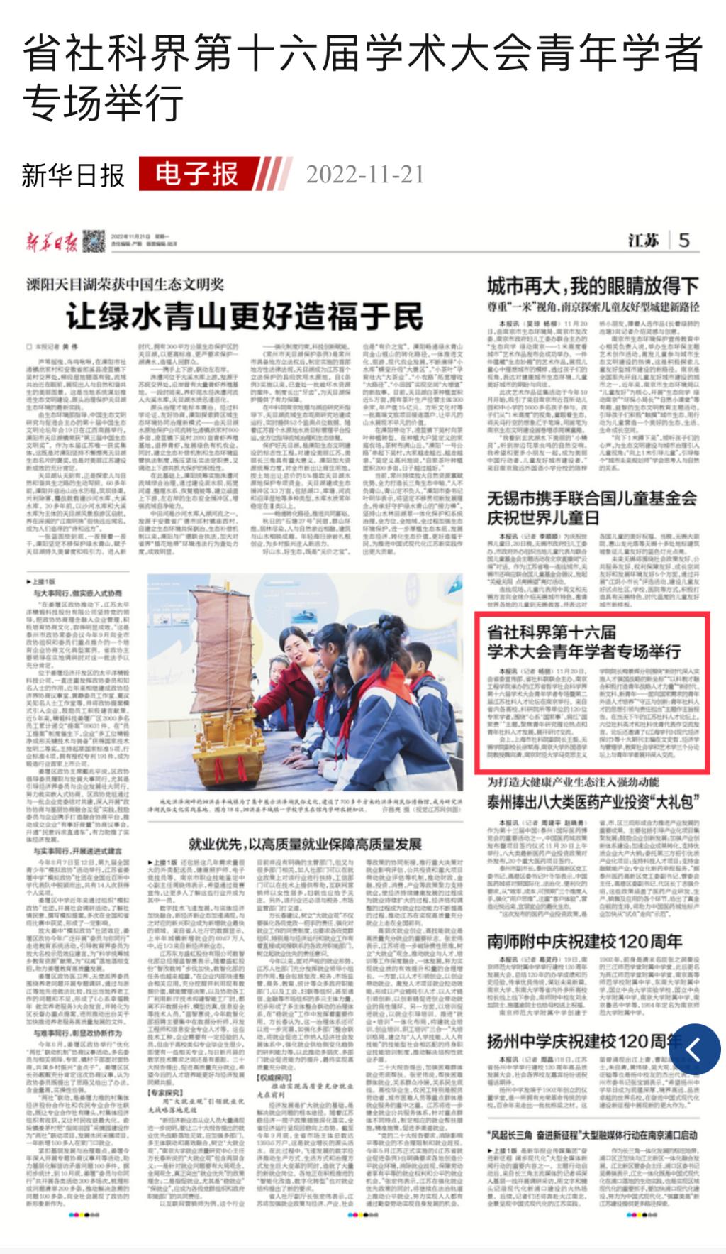 《新华日报》:省社科界第十六届学术大会青年学者专场举行