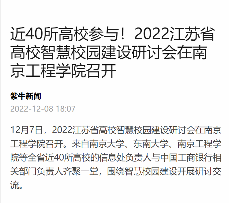 《紫牛新闻》:近40所高校参与!2022江苏省高校智慧校园建设研讨会在凯发k8官网召开