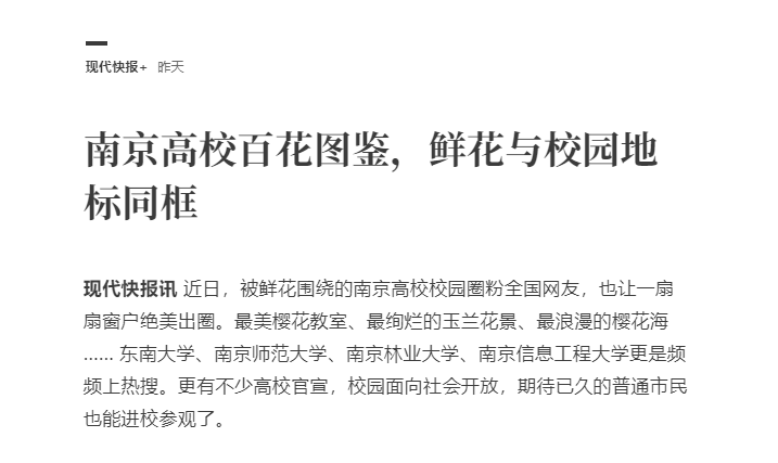 《现代快报》:南京高校百花图鉴,鲜花与校园地标同框