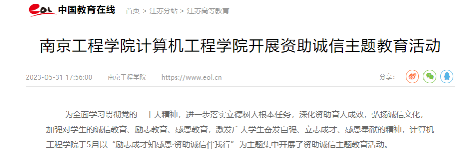 《中国教育在线》:凯发k8官网计算机凯发开展资助诚信主题教育活动