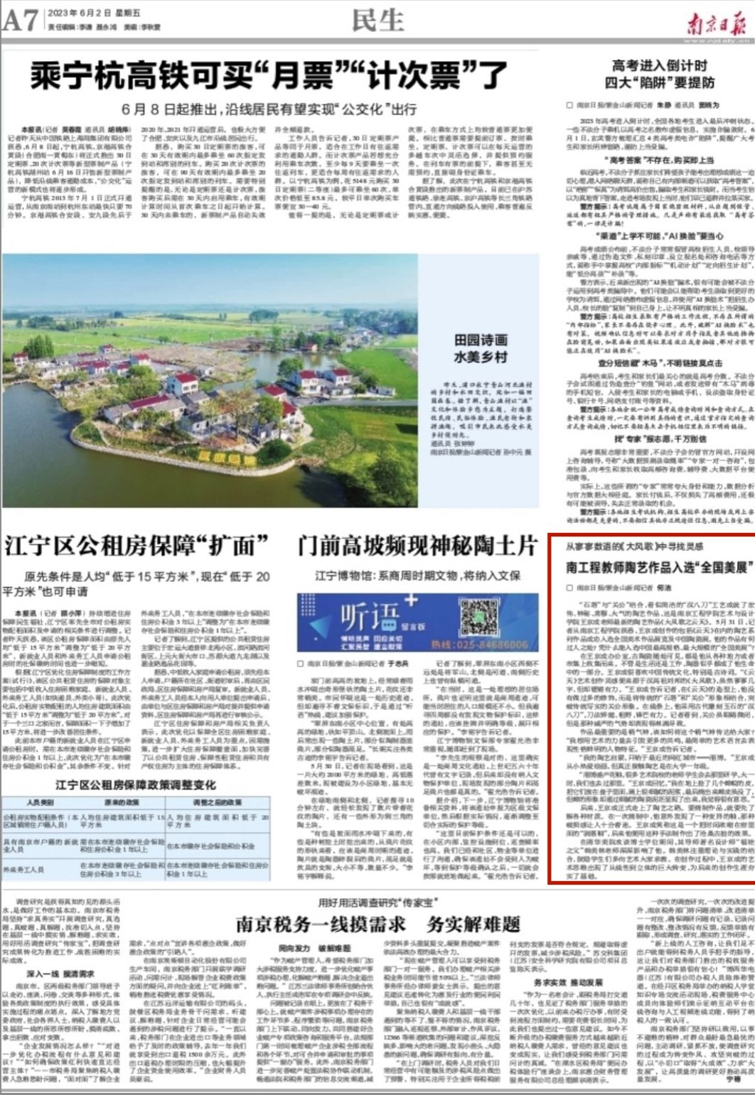《南京日报》:从寥寥数语的《大风歌》中寻找灵感——南工程教师陶艺作品入选“全国美展”