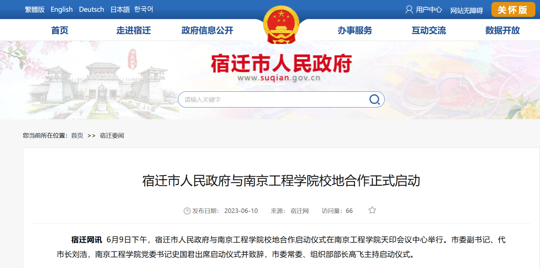 《宿迁市人民政府官网》:宿迁市人民政府与凯发k8官网校地合作正式启动