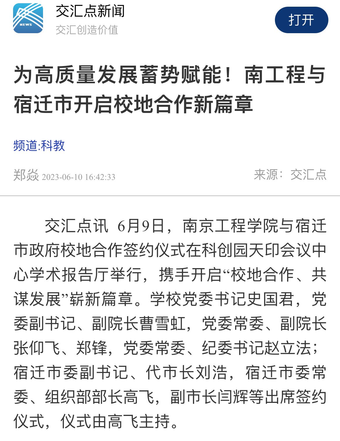 《交汇点》:为高质量发展蓄势赋能!南工程与宿迁市开启校地合作新篇章