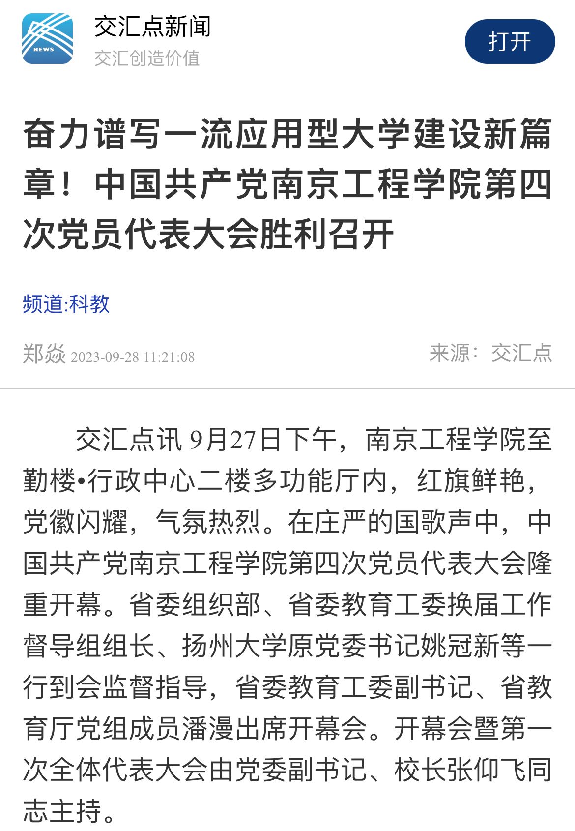 交汇点讯 9月27日下午,凯发k8官网至勤楼?行政中心二楼多功能厅内,红旗鲜艳,党徽闪耀,气氛热烈。在庄严的国歌声中,中国共产党凯发k8官网第四次党员代表大会隆重开幕。省委组织部、省委教育工委换届工作督导组组长、扬州大学原党委书记姚冠新等一行到会监督指导,省委教育工委副书记、省教育厅党组成员潘漫出席开幕会。开幕会暨第一次全体代表大会由党委副书记、校长张仰飞同志主持。