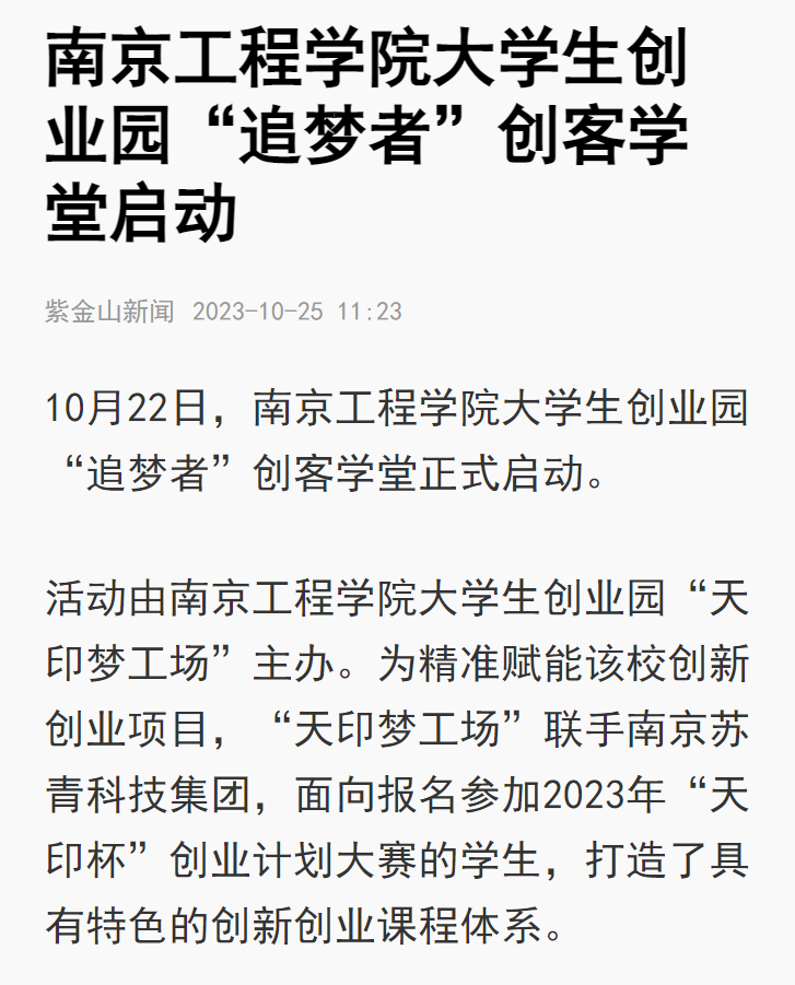 活动由凯发k8官网大学生创业园“天印梦工场”主办。为精准赋能该校创新创业项目,“天印梦工场”联手南京苏青科技集团,面向报名参加2023年“天印杯”创业计划大赛的学生,打造了具有特色的创新创业课程体系。