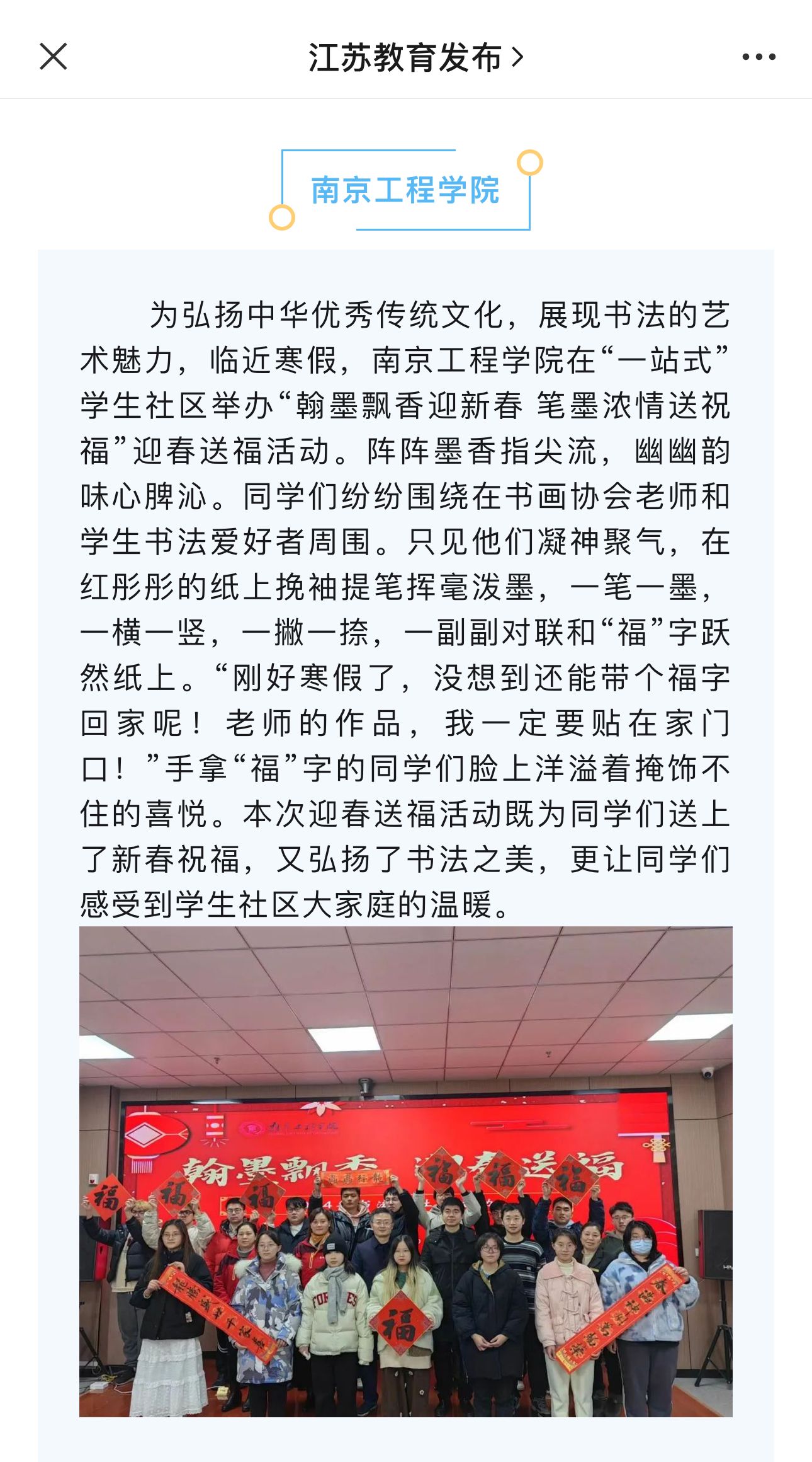 为弘扬中华优秀传统文化,展现书法的艺术魅力,临近寒假,凯发k8官网在“一站式”学生社区举办“翰墨飘香迎新春 笔墨浓情送祝福”迎春送福活动。阵阵墨香指尖流,幽幽韵味心脾沁。同学们纷纷围绕在书画协会老师和学生书法爱好者周围。只见他们凝神聚气,在红彤彤的纸上挽袖提笔挥毫泼墨,一笔一墨,一横一竖,一撇一捺,一副副对联和“福”字跃然纸上。“刚好寒假了,没想到还能带个福字回家呢!老师的作品,我一定要贴在家门口!”手拿“福”字的同学们脸上洋溢着掩饰不住的喜悦。本次迎春送福活动既为同学们送上了新春祝福,又弘扬了书法之美,更让同学们感受到学生社区大家庭的温暖。
