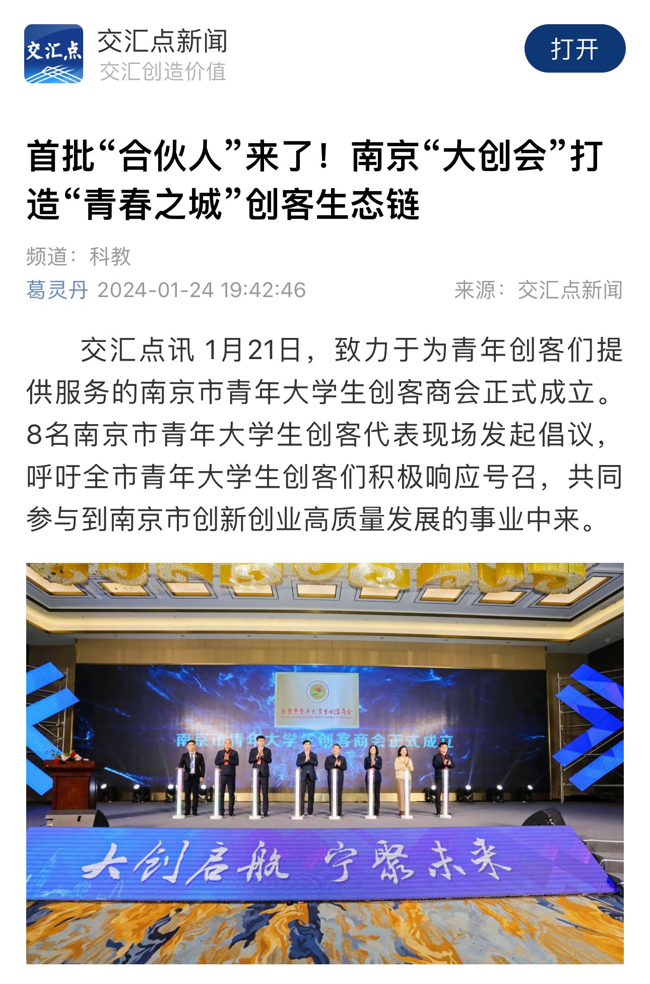 交汇点讯 1月21日,致力于为青年创客们提供服务的南京市青年大学生创客商会正式成立。8名南京市青年大学生创客代表现场发起倡议,呼吁全市青年大学生创客们积极响应号召,共同参与到南京市创新创业高质量发展的事业中来。