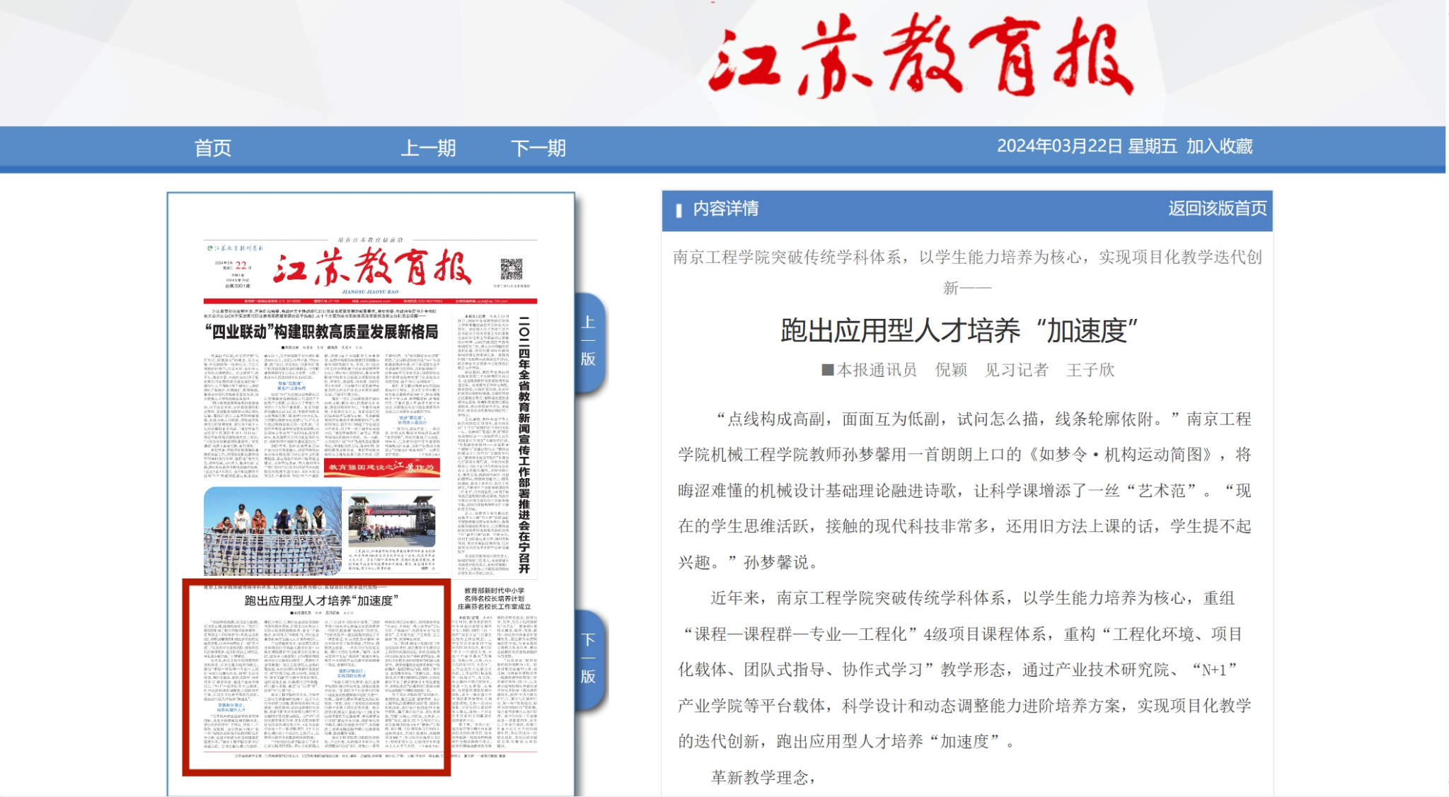 “为了把《机械设计基础》这门专业基础课讲好,我们把项目化教学以工坊的形式落到实处,多次造访优秀科研团队及优质产学研合作企业,将现代信息技术及科研成果有机融入教学中。教学技能就在这样的磨砺中得到提升,也更加贴近行业、更加了解专业、更加熟悉学生。”郑璐恺说。实践表明,在不断打磨课程过程中,项目化教学带动了教师教学水平的显著提升,该校因此在“新建本科院校教师教学发展指数”中蝉联全国第1名。