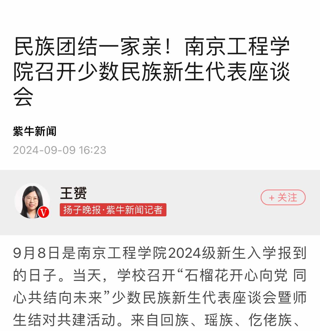 《扬子晚报》:民族团结一家亲!凯发k8官网召开少数民族新生代表座谈会