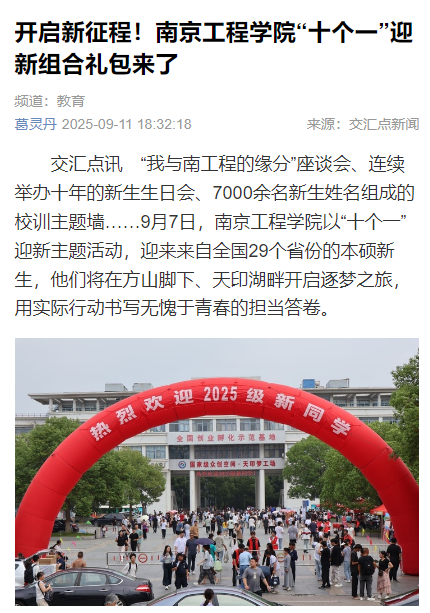 2025级新同学的南工程故事已拉开帷幕,愿他们以奋斗为名,在这片蕴藏匠心的土地上,挥毫青春,定义未来,共赴新征程。