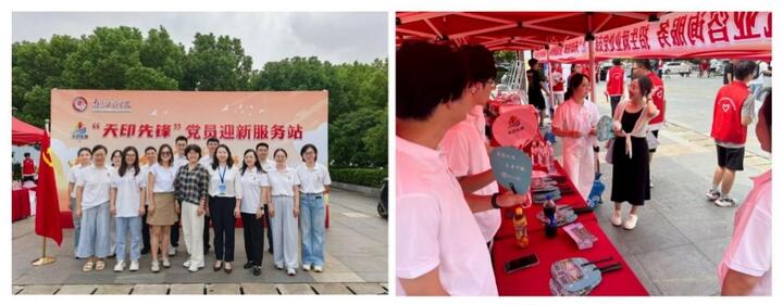 活动当天,该校将入党启蒙教育、生涯规划教育从课堂延伸至迎新一线,在生动的实践中涵育新人。“天印先锋”党员迎新服务站前,来自机关党委的党员教师们,细心地为新生和家长答疑解惑、指引路线、发放免费早餐……以实际行动和先锋示范为新生开展理想信念教育;“招生就业咨询服务站”里,老师们与新生面对面交流职业规划,提前锚定成长方向,为大学生涯按下“启动键”。