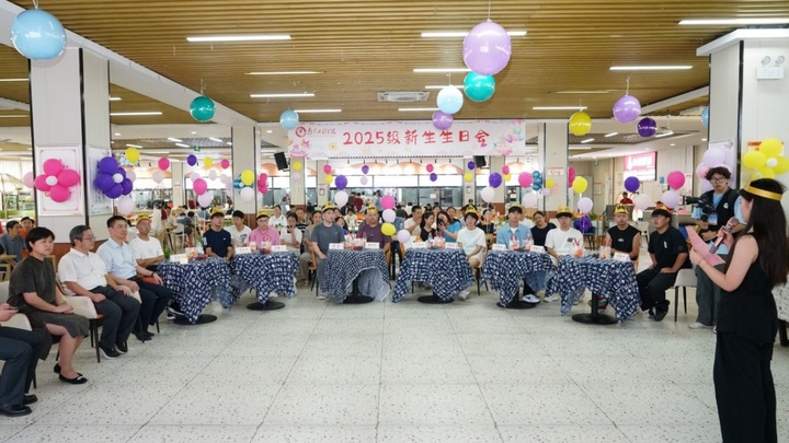 上午11点,萃园一食堂三楼响起欢快的生日歌,这是在为报到当天过生日的新生举办生日会。该活动已连续举办十年。参加活动的校领导们为11名小寿星赠送祝福卡和生日礼物,并勉励同学们“在南工程珍惜时光,收获热爱与成长”。