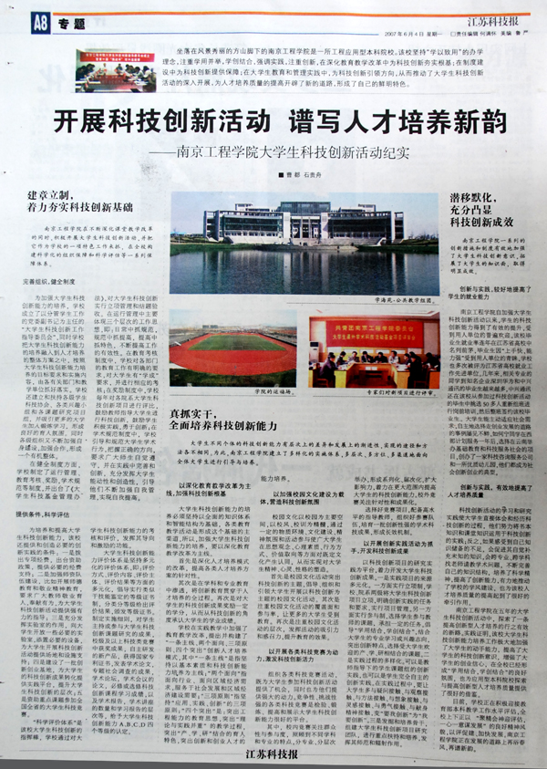 《江苏科技报》:开展科技创新活动 谱写人才培养新韵
