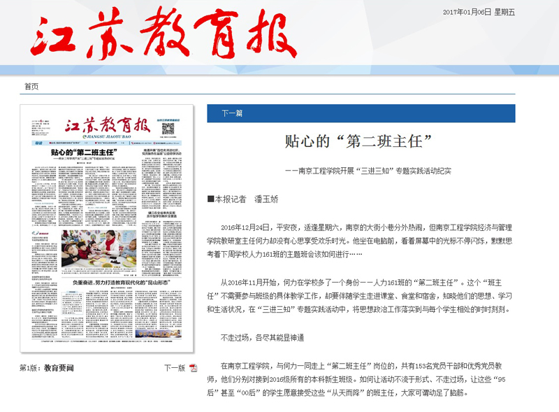 《江苏教育报》:贴心的“第二班主任”