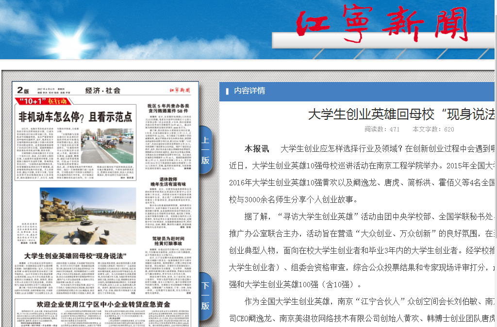 《江宁新闻》:大学生创业英雄回母校“现身说法”