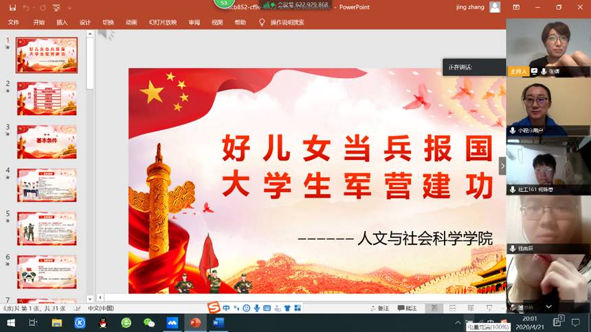 为积极响应国家号召,征集高素质兵员,4月21日,人文与社会科学学院举办线上毕业生征兵动员会。