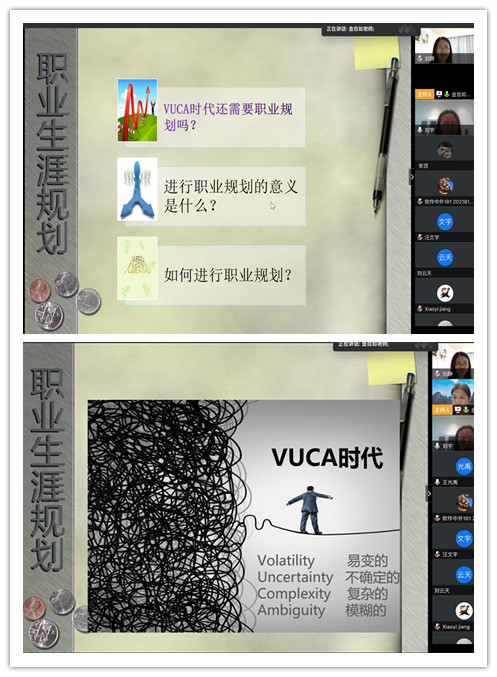 面对充满纷繁复杂不确定因素的VUCA时代,是否还需要进行职业生涯规划?职业生涯规划对于大学生具有什么样的意义?大学生应当如何进行职业规划?5月24日晚,国际教育学院邀请就业指导中心主任金自如老师,为学院全体学生开展了一场题为“VUCA下我们如何职业规划?”的线上讲座。