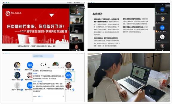 近年来,校园招聘呈现出招聘工作起步早、就业方向多元化等特点,升学出国方面受疫情影响,同样呈现出报考人数增速明显、招生规模略有扩大、复试占比逐渐上升、调剂竞争日趋白热化、第二学士学位扩招等特点。面对纷繁复杂的形势,该院从求职、考研、考公、参军四个板块给2020届毕业生进行了细致辅导。关于求职,要求学生在新学年开学前制作好个人求职简历,清晰自我定位,了解心仪企业大致的招聘情况,求职信息收集可从相关院校就业信息网、公共服务人才网、新职业网、行业及企业公众号等途径获取。关于考研,要求学生应慎重考虑第一志愿报考机会,在复习之余把握就业选项,初试分数较低的学生,更应认真对待复试与调剂环节,不轻易放弃任何上岸机会。关于考公和参军,告知学生切不可把考公当作一条“捷径”,其备考难度不亚于考研;而参军入伍可以提供考研升学名额指标、择业就业优待政策、经济补助等,值得关注了解,积极报名。集中专题辅导后,学院还针对不同专业学生的疑问进行了一一解答。“本来打算一门心思考研,听了会后发现还是要做两手准备,在复习空余时间多寻找就业岗位。”热自171班李雨婷同学说道。