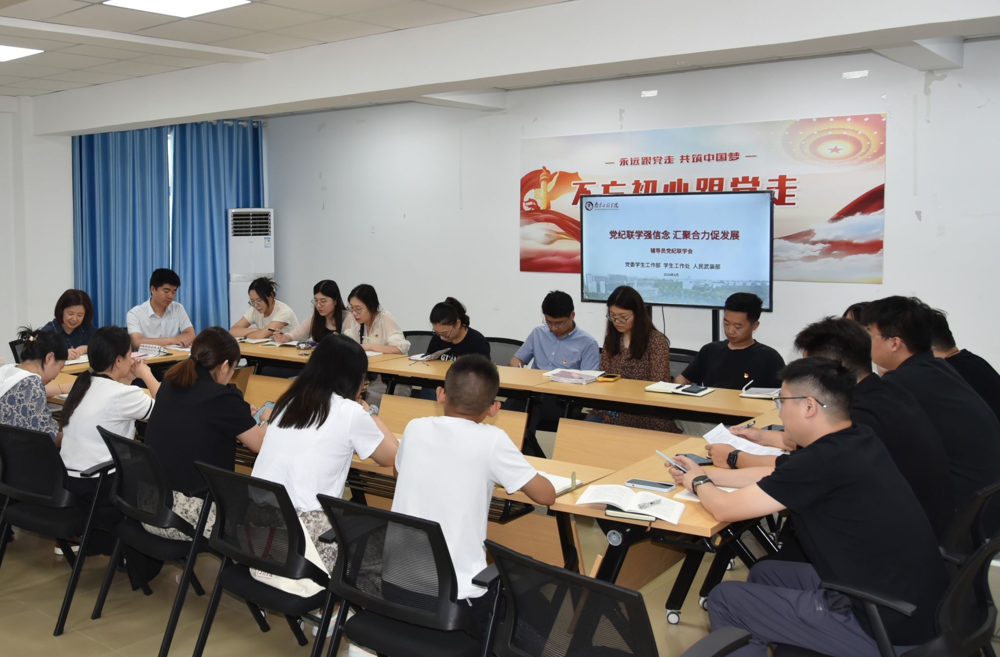 为推动党建工作和业务工作深度融合,打造纪律严明、作风优良的高素质辅导员队伍,6月13日,学工部、学工处、人武部党支部联合各学院辅导员代表走进学生社区北区九号公寓站,开展党纪学习教育联学会。